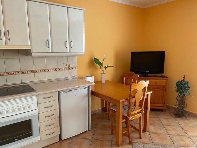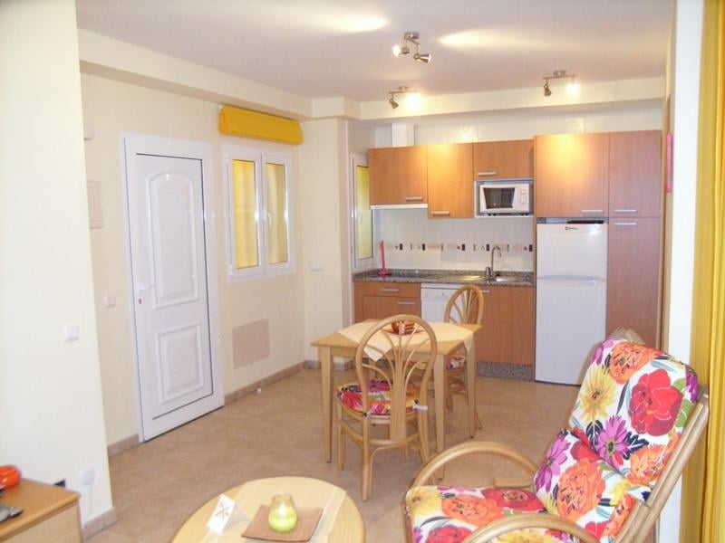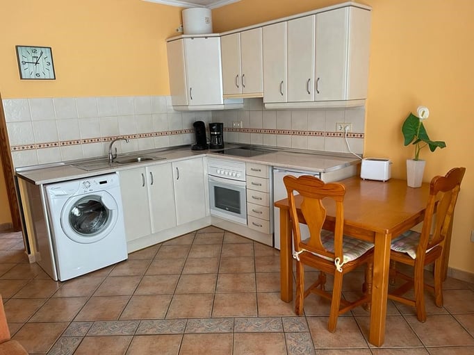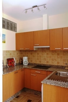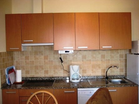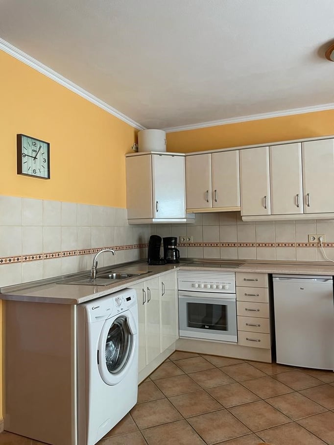 Mit Appartement “PEDRO III-A16” erwartet Sie eine gemütlich eingerichtete Ferienwohnung mit Schlafzimmer, Bad mit Dusche, Wohn-Esszimmer mit gut ausgestatteter Küche. Zusätzliche Beleuchtung über der Arbeitsplatte. Fenster und Terrasentüren sind neu.