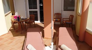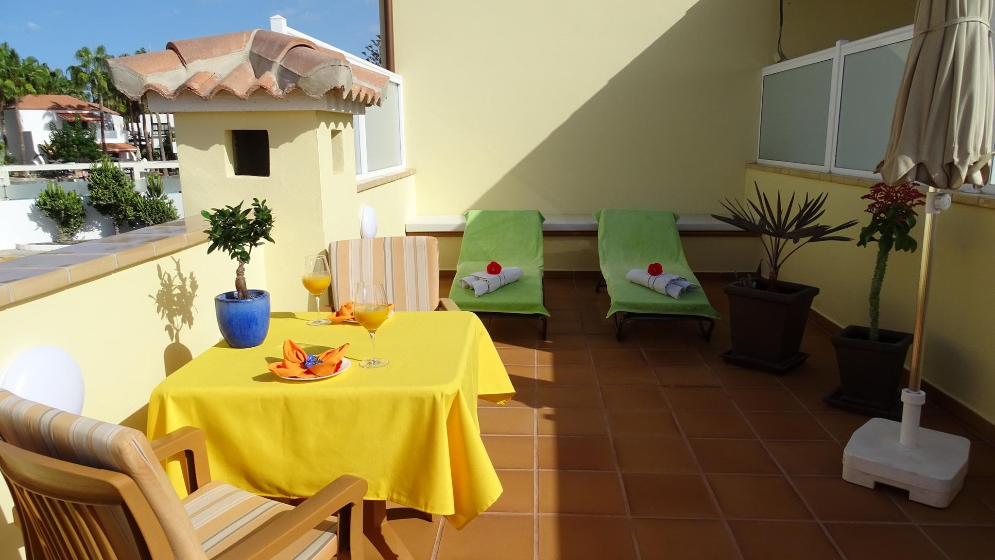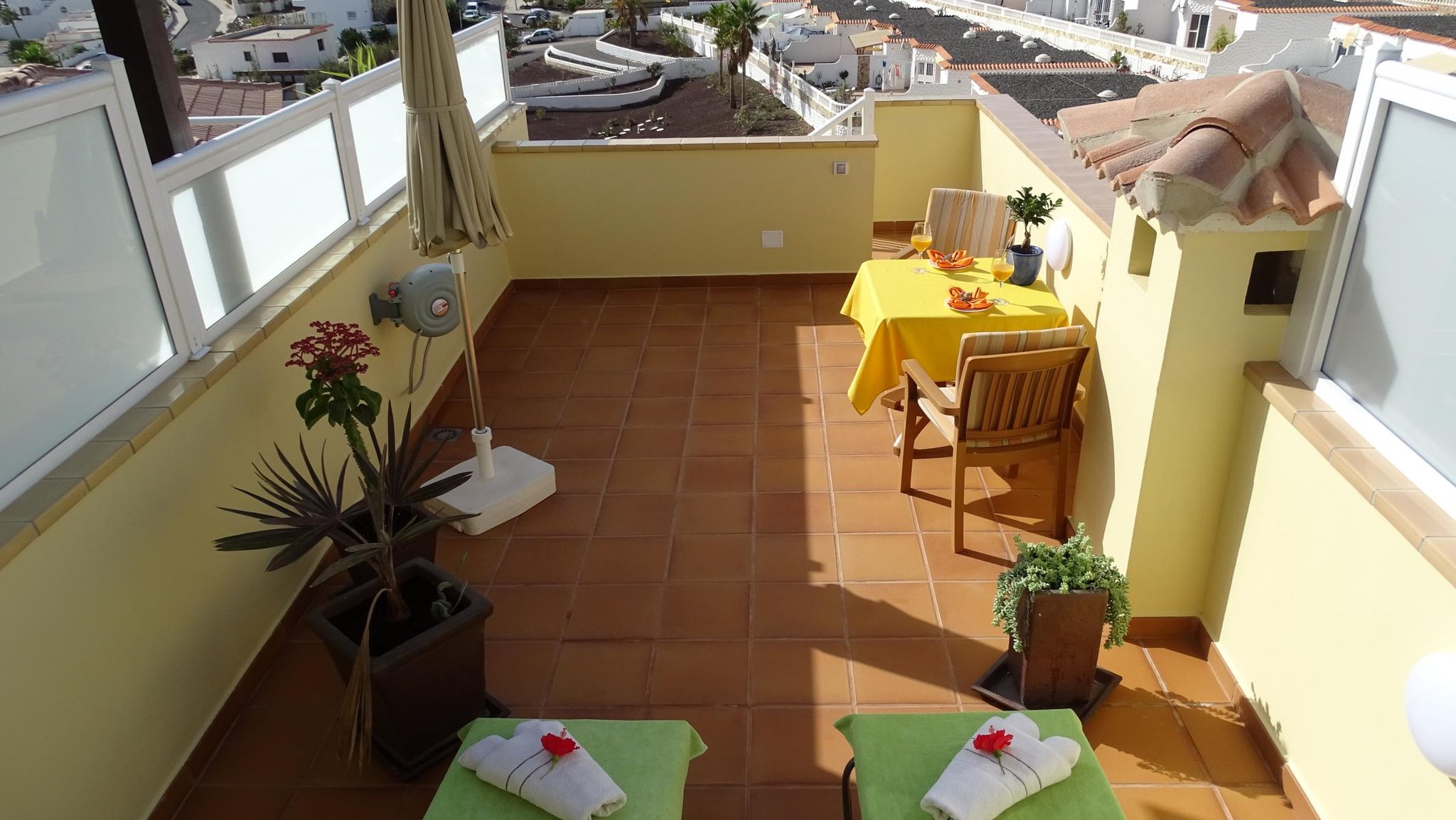 Von dieser haben Sie einen schöne Meer- und Strandblick. Und zusätzlich auch noch die große Poolterrasse und Gemeinschafts-Sonnenterrasse mit