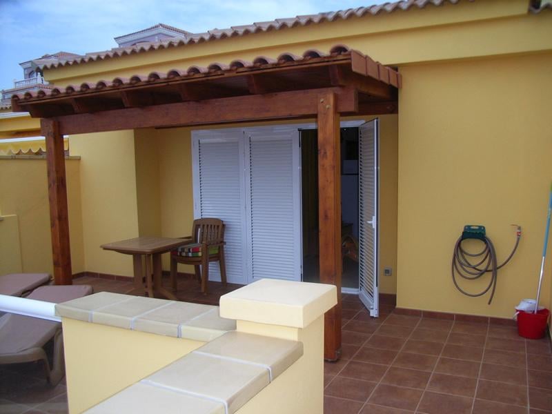 gemütlicher Sitzecke die mit einer Pergola überdacht ist. Super Meer- und Strandblick.